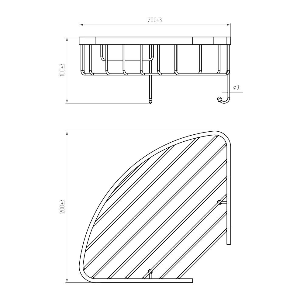 Полка угловая AVS Cesta, 20х20 см, хром, с крючками