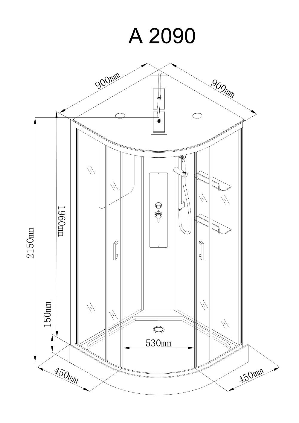 Душевая кабина A2090LED 90x90 cm.