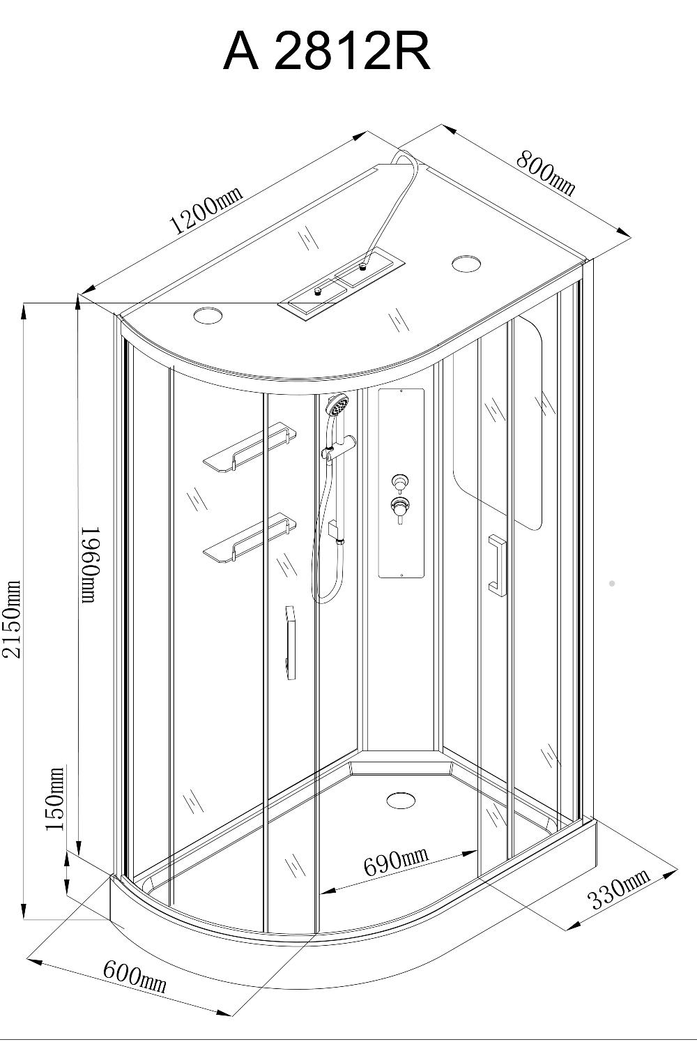 Душевая кабина A2812LLED 120x80 cm.