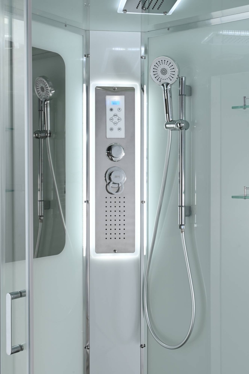 Стильная душевая кабина AvaCan сочетает в себе высокую функциональность, практичность и надежность. При изготовлении применяется безопасное закаленное стекло, надежно фиксируемое алюминиевым профилем.Профиль сделан из алюминия повышенной прочности. Сборка без силикона (увеличивает срок службы, защищает от протечек), внутренняя сборка (облегчает установку и ревизию; позволяет установить в ограниченном пространстве и обойтись без демонтажа других сантехнических приборов), смеситель резьбовой (без хомутов).Двойные металлические ролики дверей (распределение нагрузки на два ролика, увеличивают срок службы). Душевая штанга(позволяет регулировать по высоте ручную лейку), ручная арома-лейка с витамином С (картридж в комплекте,есть возможность замены или удаления картриджа), полочки(из стекла, с ограничителем), сифон с гидрозатвором, сенсорный пульт управления с функциями: блютуз, LED подсветка, радио, вытяжка, гидромассаж спины, тропический (верхний) душ.