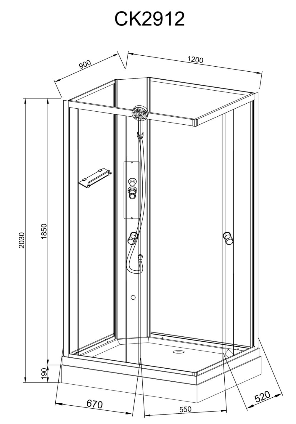 Душевая кабина AvaCan CK2912N без крыши 120x90cm.