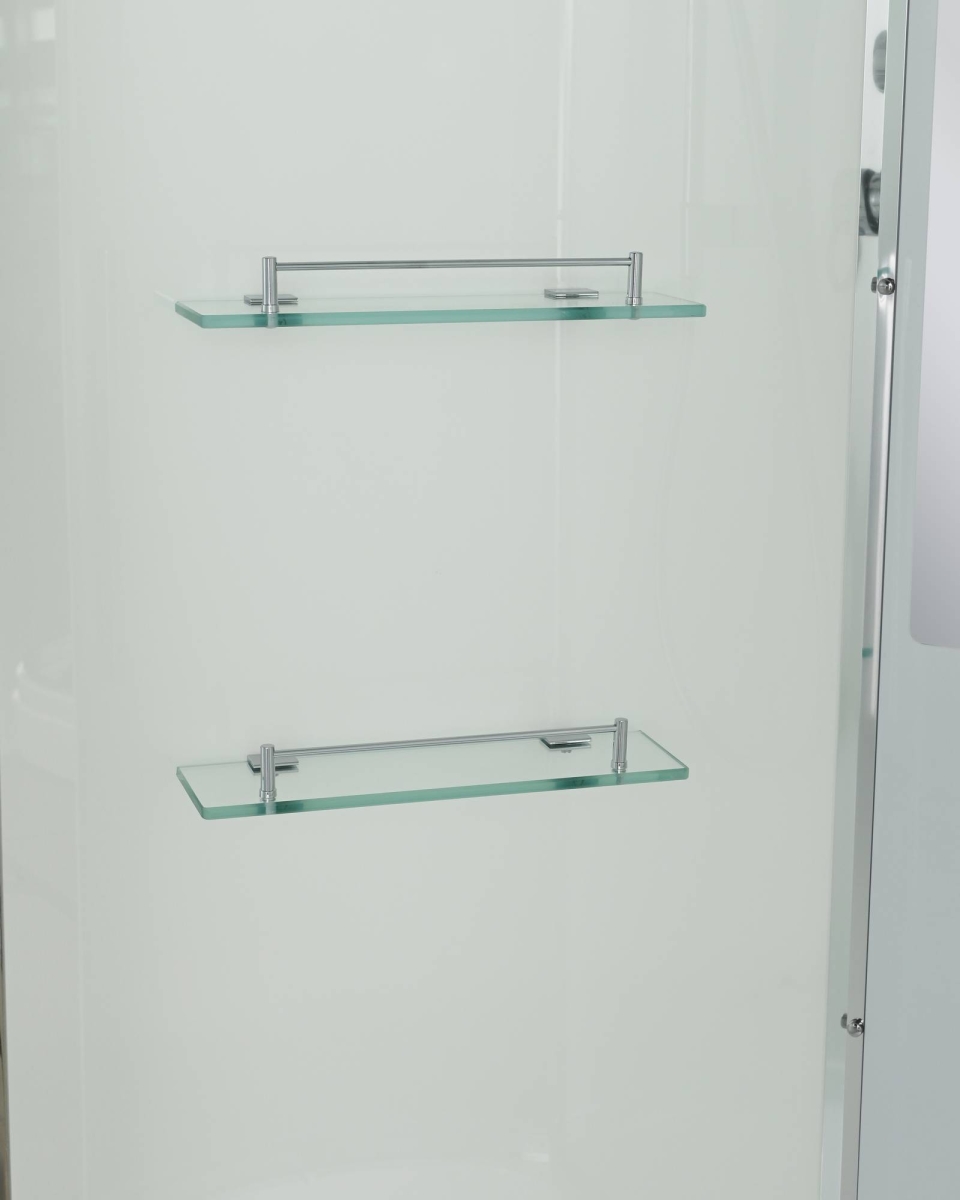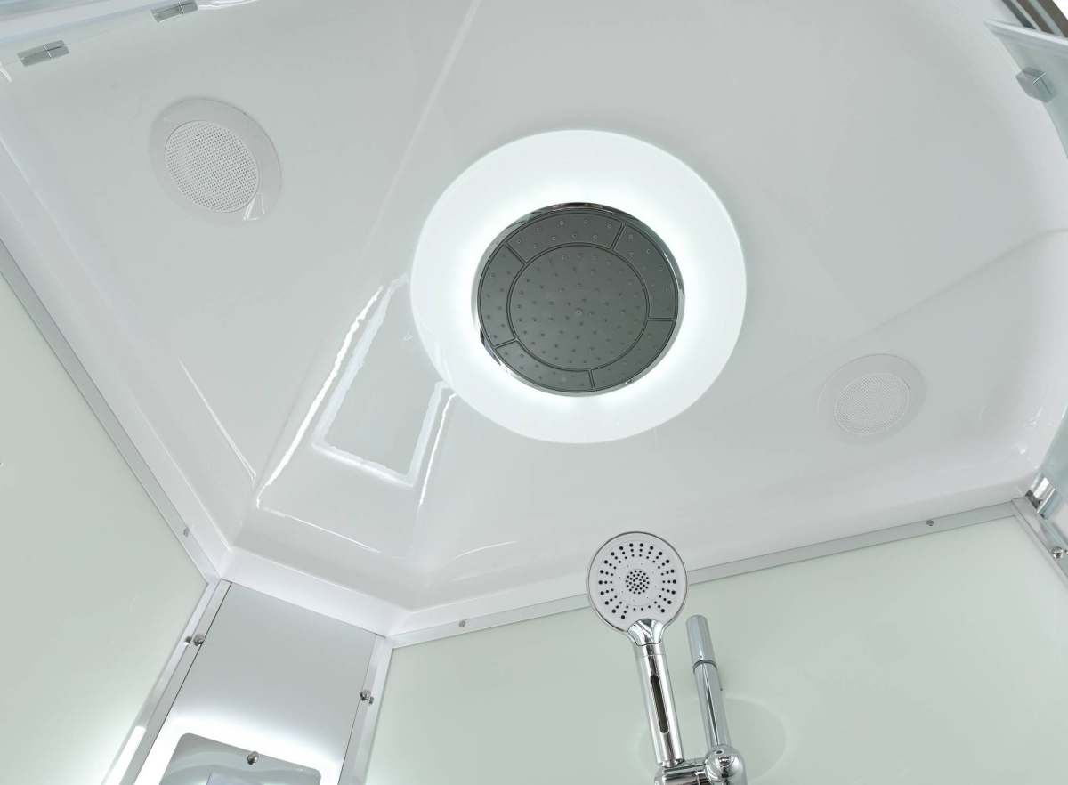 - Оснащение: Блютуз / LED подсветка /радио /вытяжка/гидромассаж спины/сифон/ Переключатель режимов /2-е Полочки /резьбовой смеситель / Тропический (верхний) душ/ручки дверей из нержавейки /арома-лейка с витамином С/ Душевая