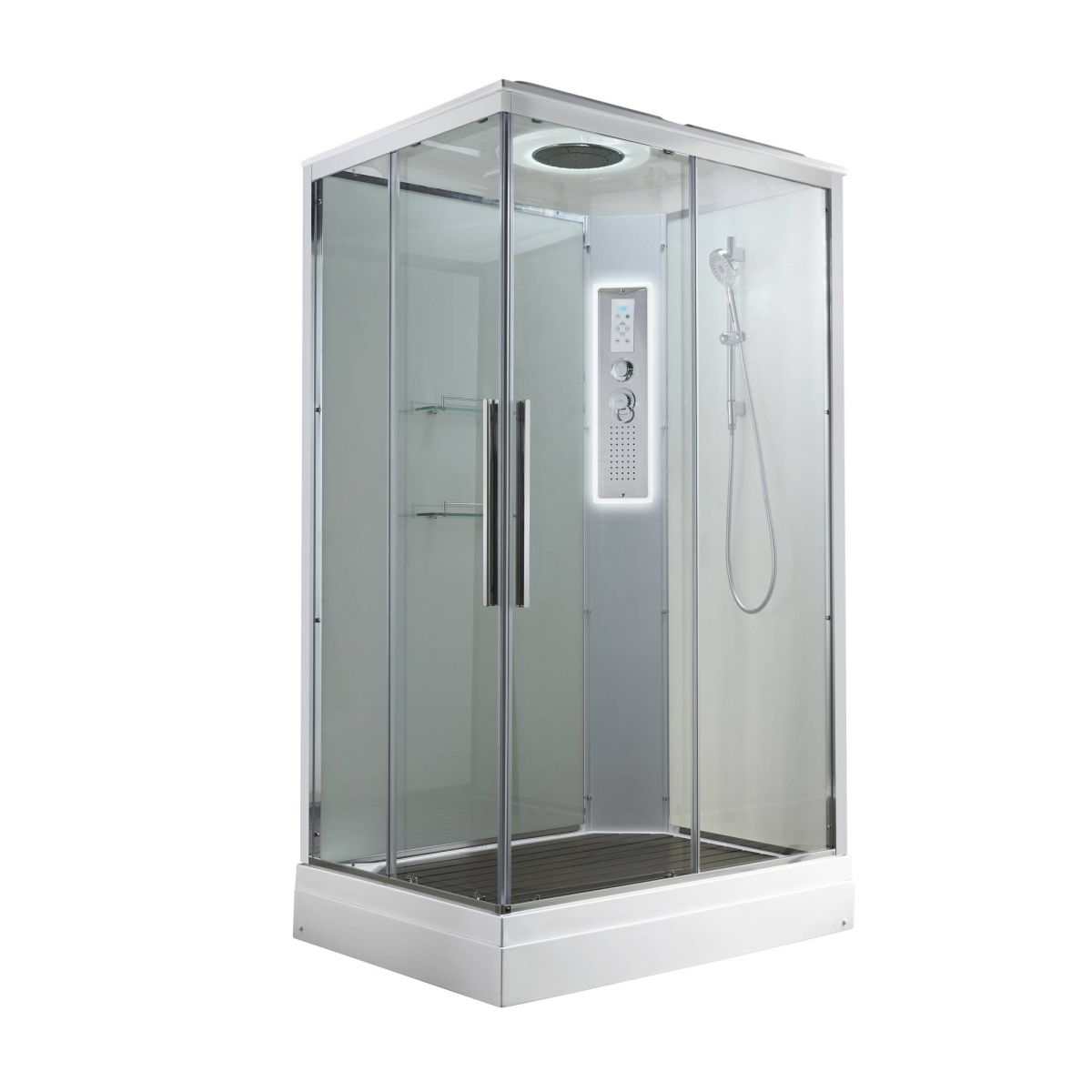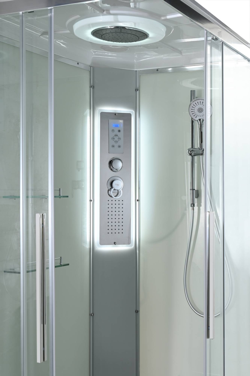 - Оснащение:Блютуз / LED подсветка /радио /вытяжка/гидромассаж спины/сифон/ Переключатель режимов /2-е Полочки /резьбовой смеситель / Тропический (верхний) душ/ручки дверей из нержавейки /арома-лейка с витамином С/ Душевая штанга
