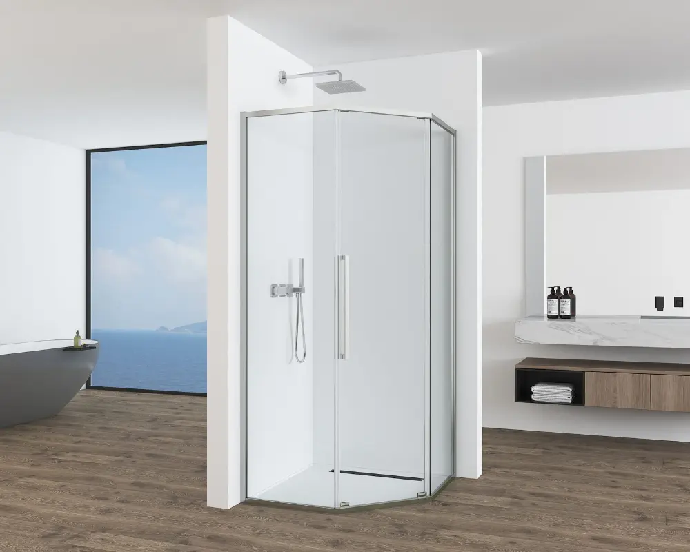 Душевой уголок S1150-9090N монтируется в угол ванной комнаты с возможностью корректировки неровностей стен. Раздвижная роликовая система обеспечивает лёгкое открывание дверей даже при частом использовании. Установка может быть выполнена на пол или поддон, в зависимости от предпочтений