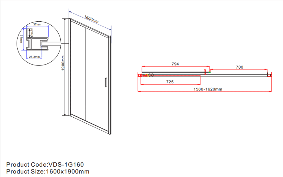 Душевая дверь Vincea Garda VDS-1G160CH 160см. хром