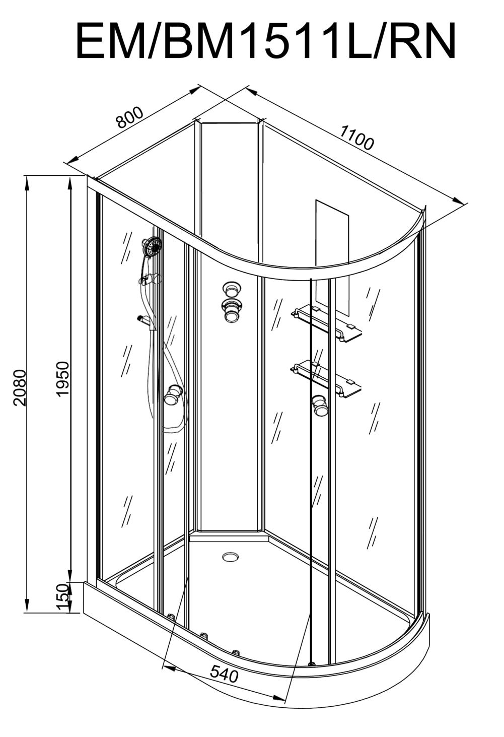 Душевая кабина Dto ЕМ1511N-R LED 110x80 cm.