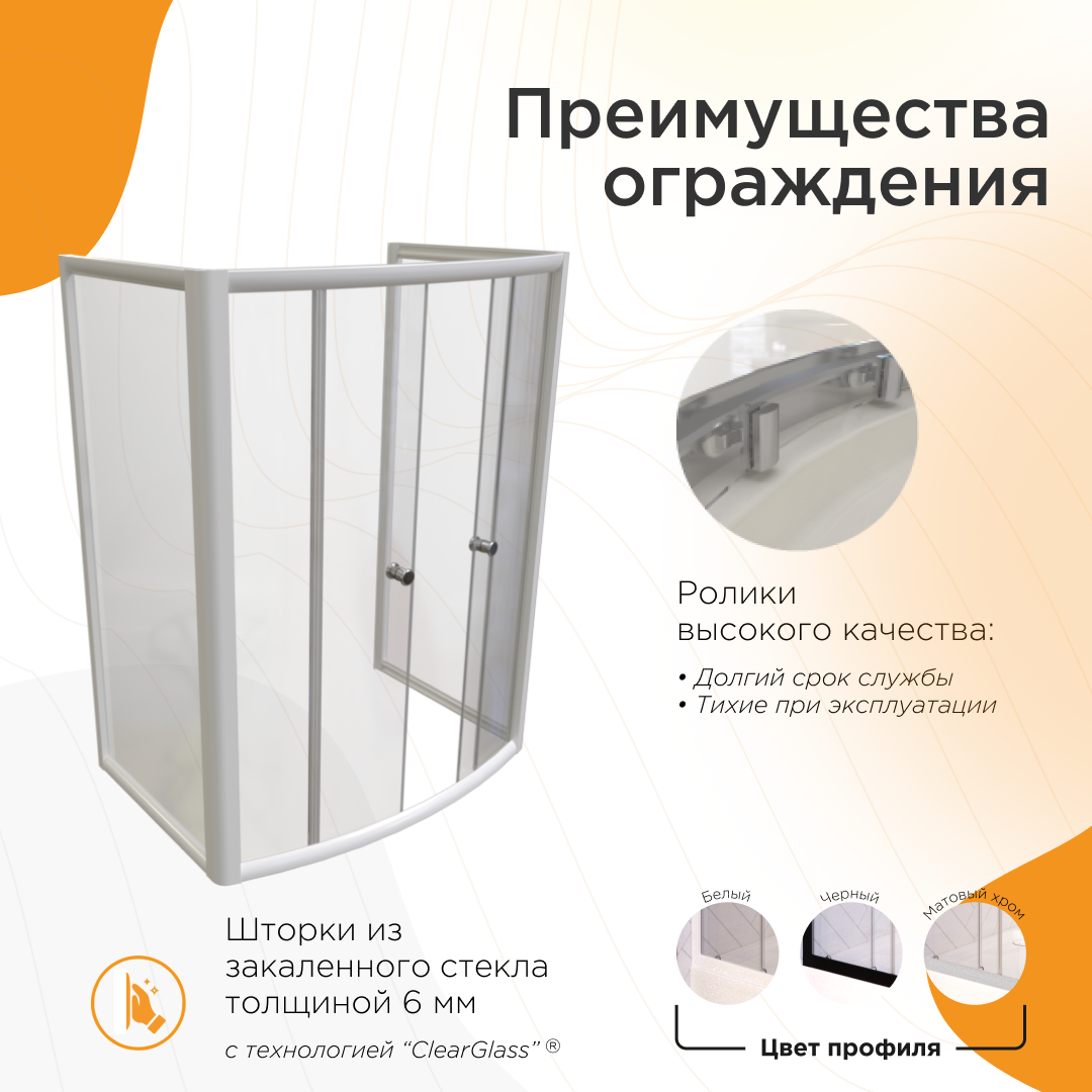 - Душевое ограждение из 3 частей (фронтальная+2 боковых стекла)