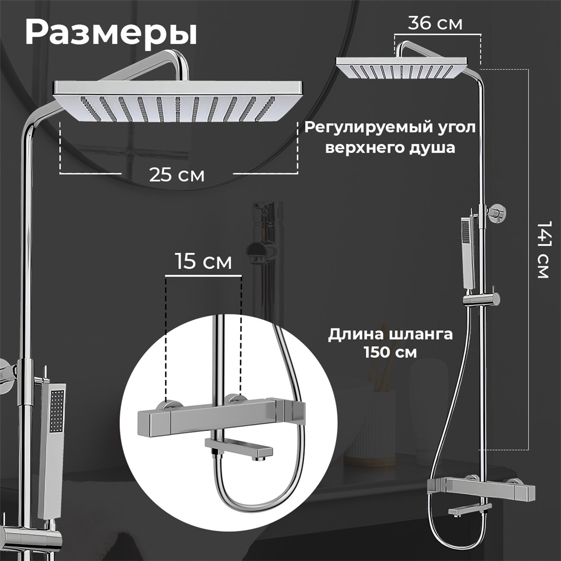 - Форма верхнего душа: квадратная