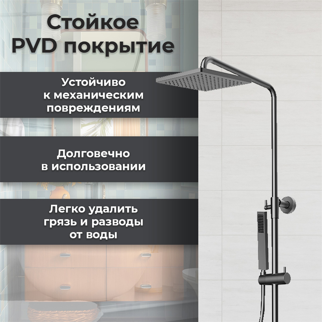 - Форма верхнего душа: квадратная