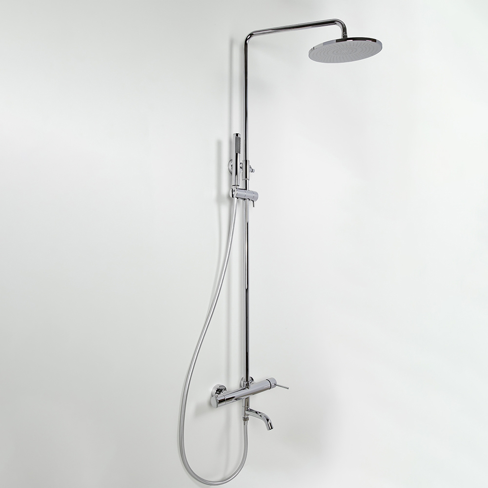 - Комплектация для сайта: душевая стойка; комплект эксцентриков; смеситель; верхний душ; душевой шланг; ручной душ; инструкция.