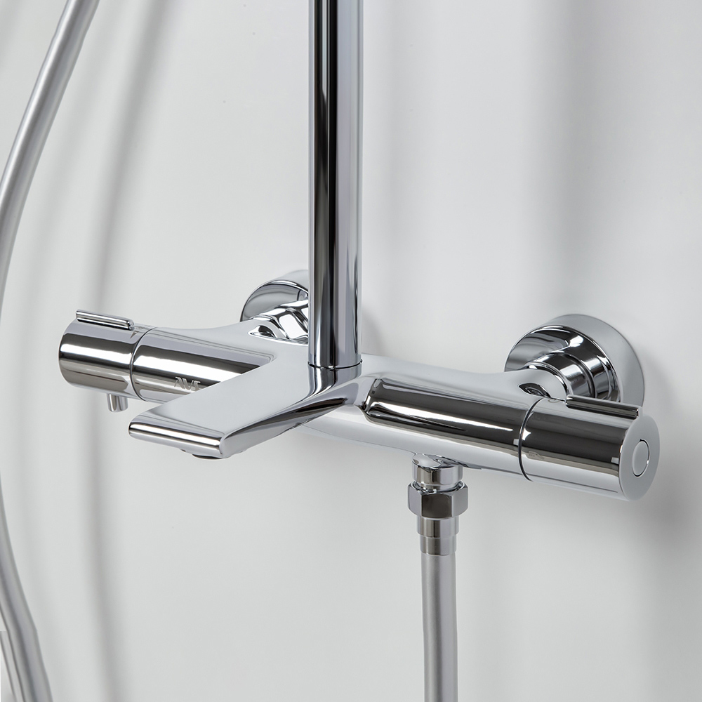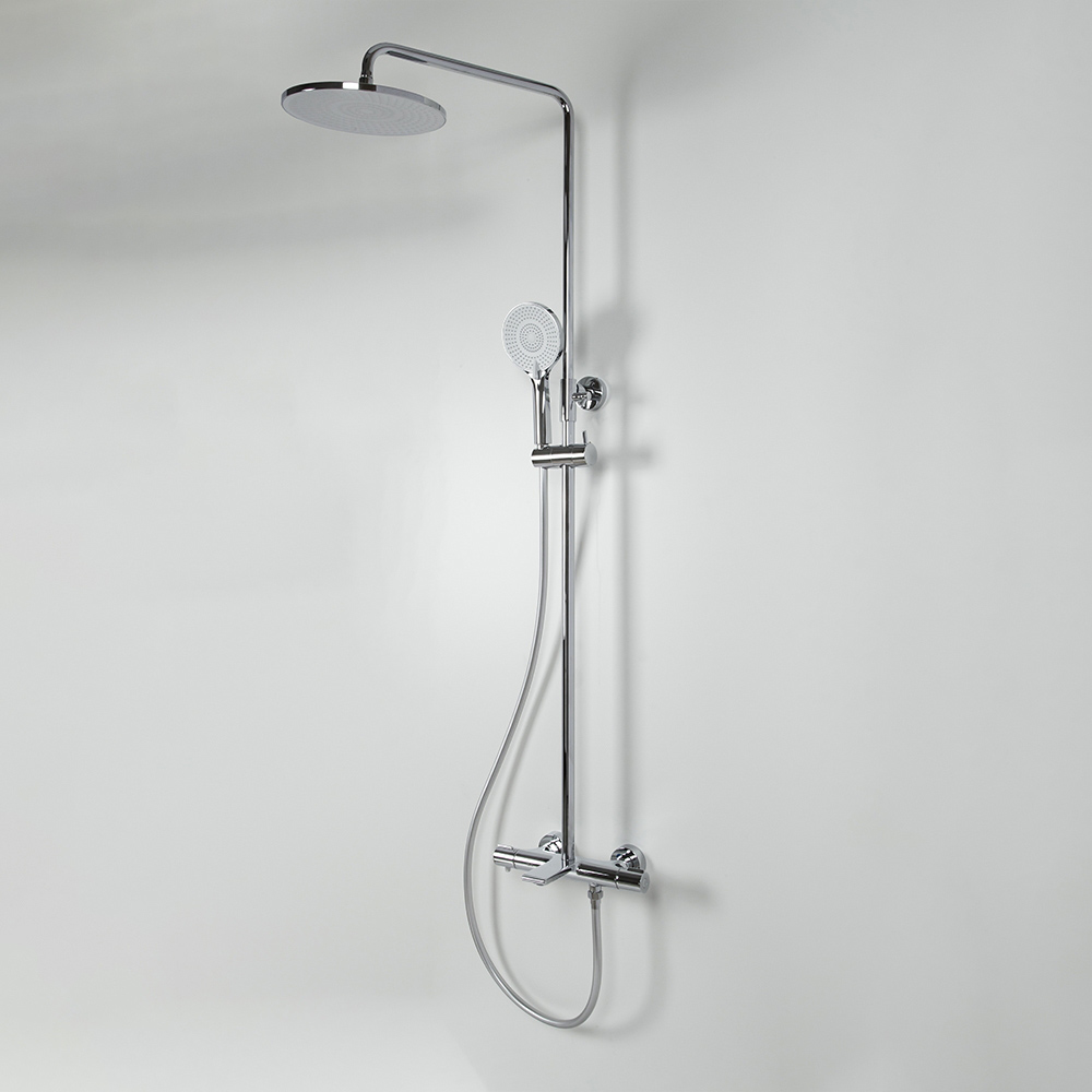 - Комплектация для сайта: душевая стойка; комплект эксцентриков; термостат; верхний душ; душевой шланг; ручной душ; инструкция.