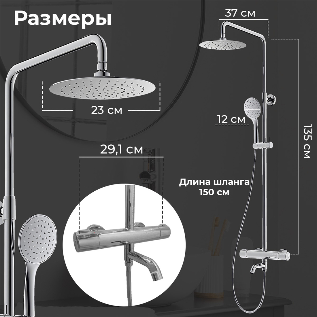 - Размер верхнего душа (см): 23