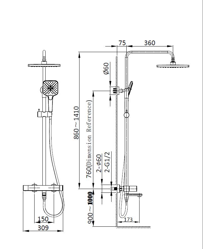 - Высота, мм: 860-1410