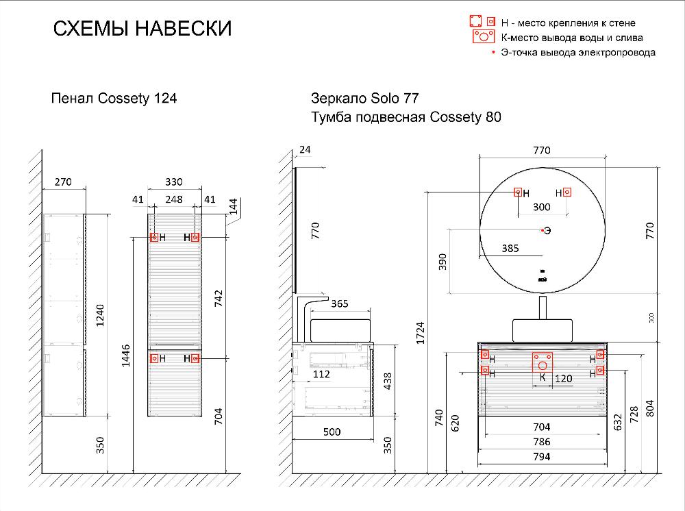 Пенал Jorno Cossety 124 подвесной Белый