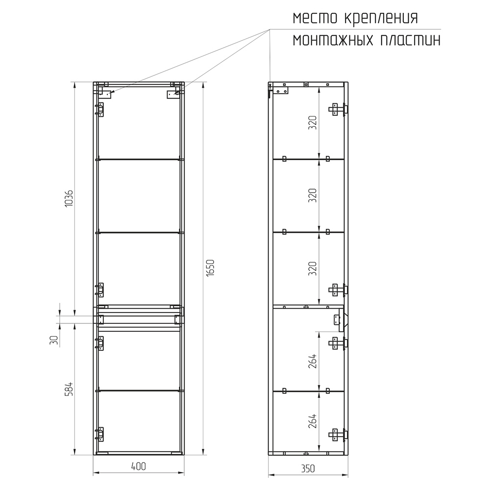 - Дополнительная информация*: стеклянные полки