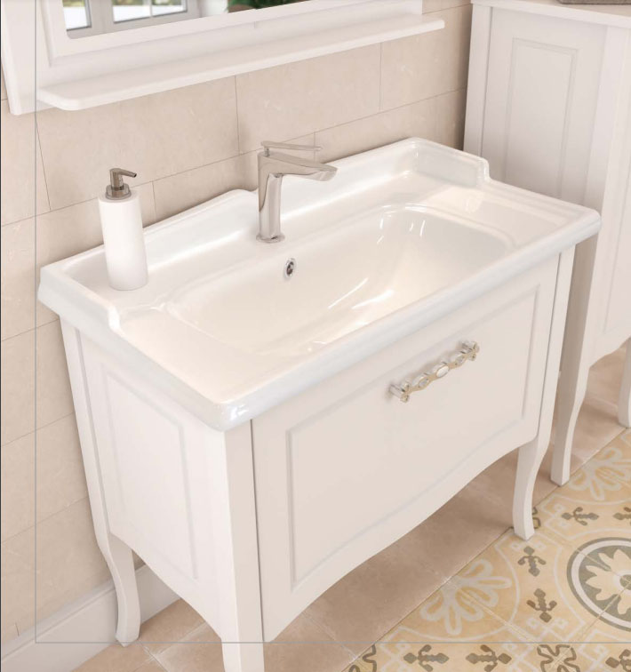 - Тумба укомплектована раковиной столешницей с овальной чашей.