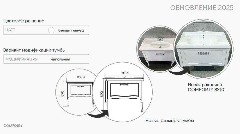 Тумба-умывальник:- Варианты цвета корпуса и фасадов: белый глянец