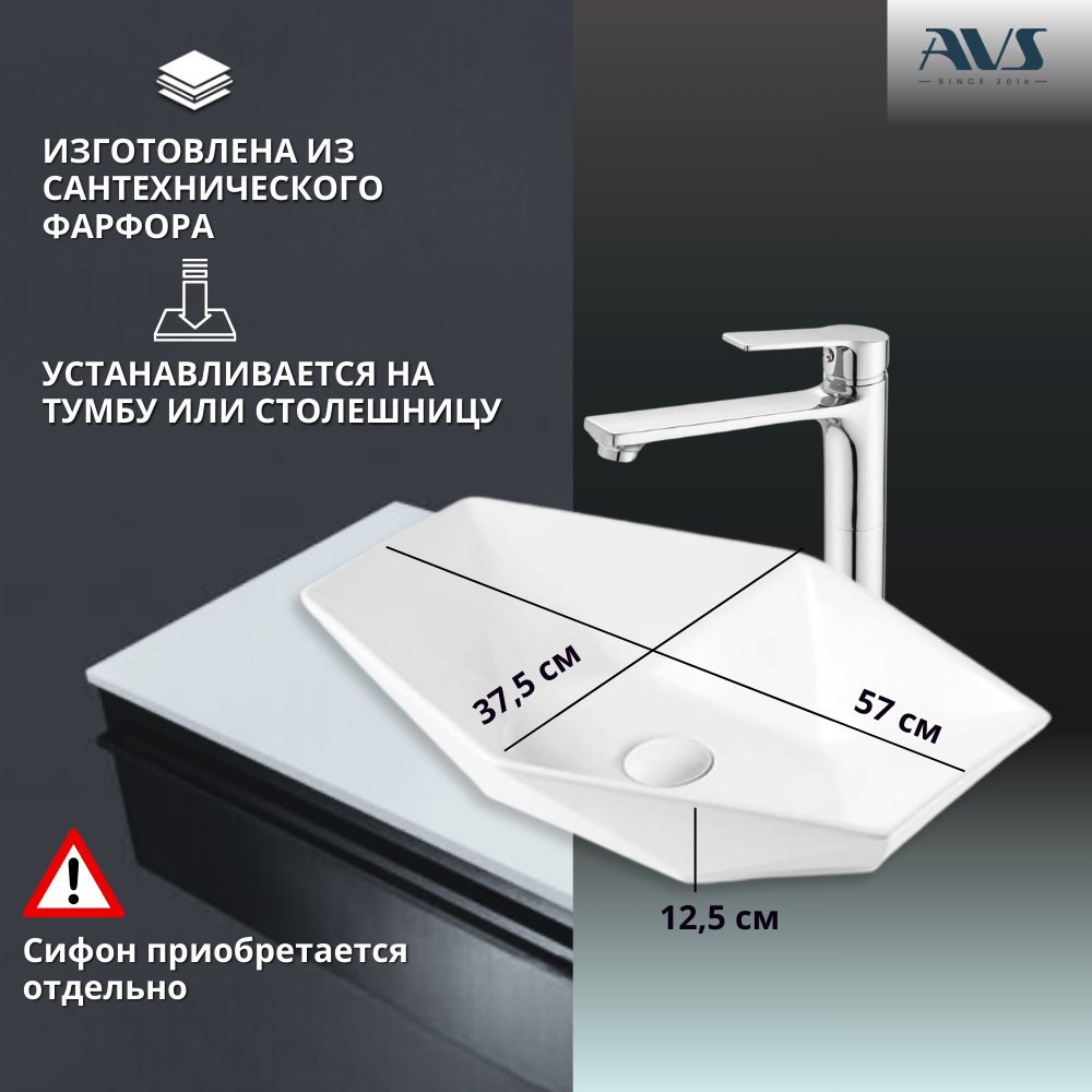 Раковина AVS Барбара 57х38 белая