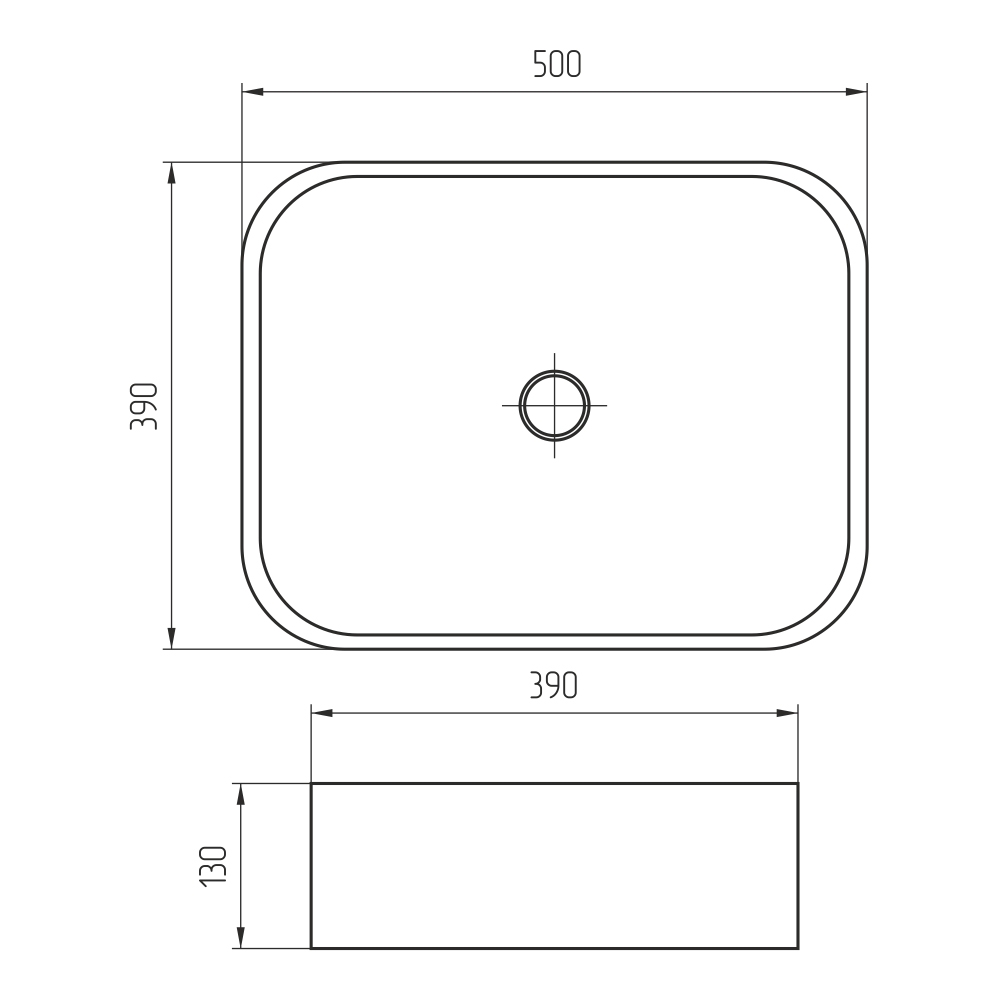 - Отверстие под перелив: без отверстия