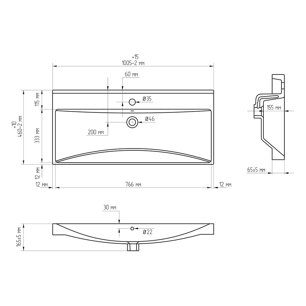 - Отверстия под смеситель: 1