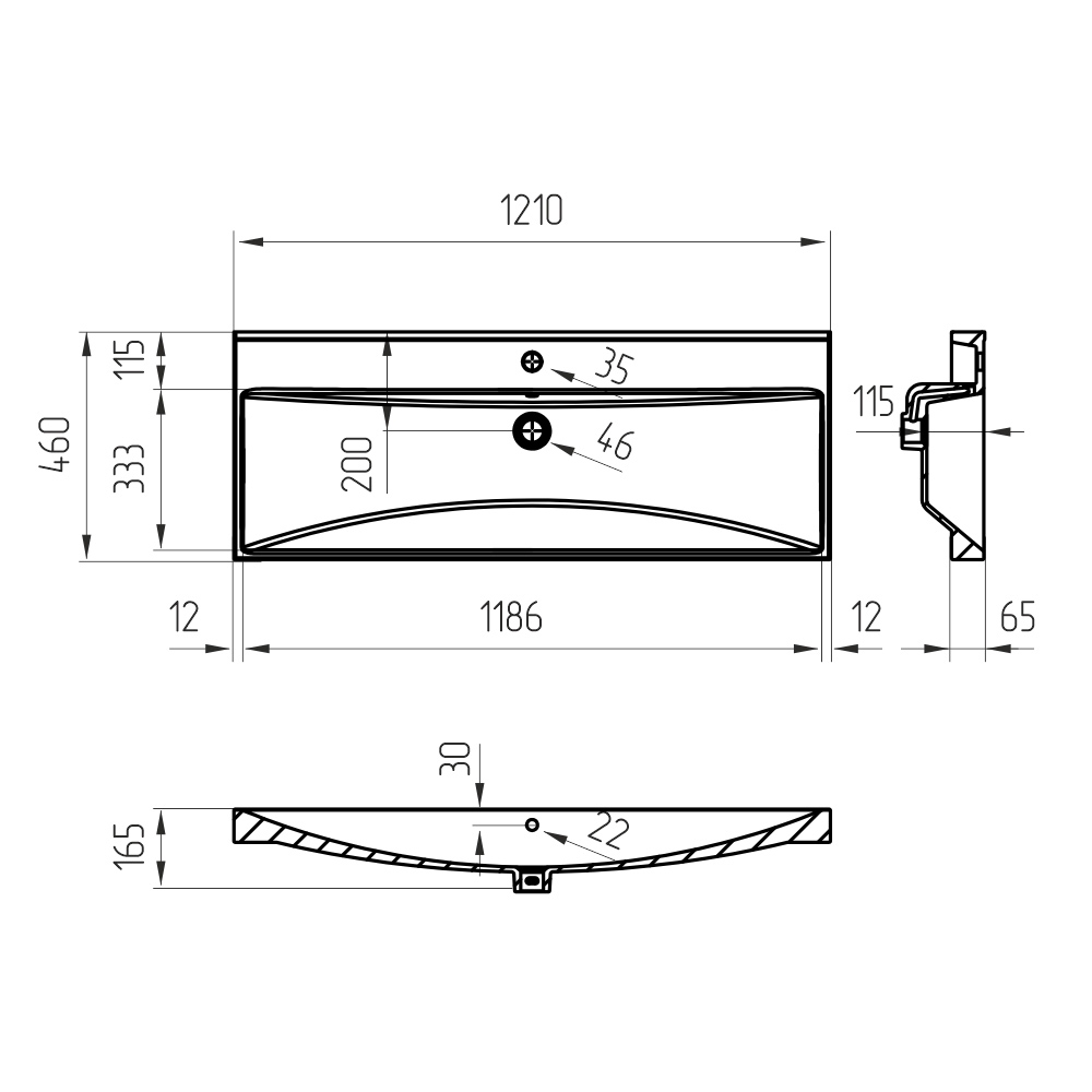 Раковина мебельная AVS Гармония 121x46 белая