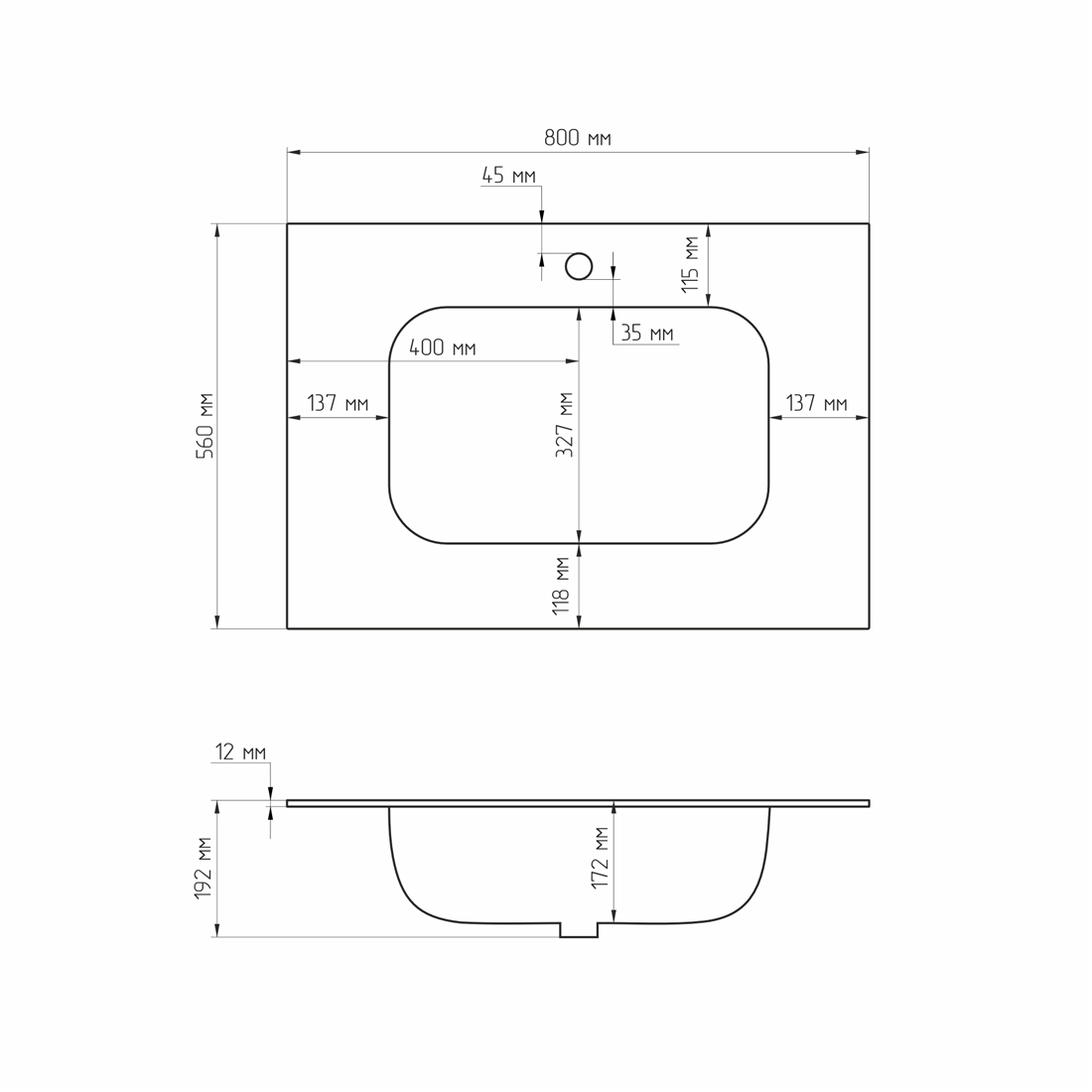 - Дополнительная информация: матовая столешница из керамогранита толщиной 10,5 см; сифон диаметр 3,2 см; край столешницы 45%.