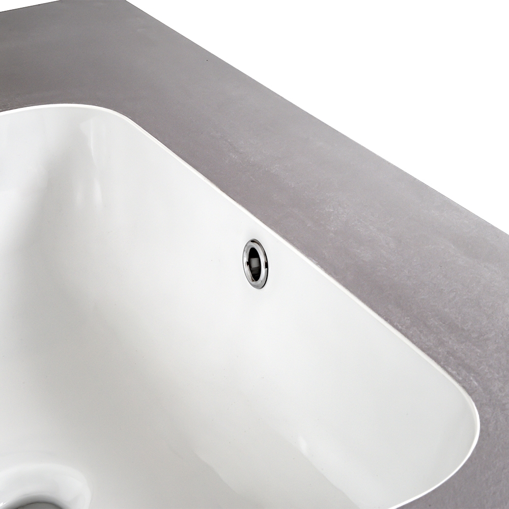 - Дополнительная информация: матовая столешница из керамогранита толщиной 10,5 см; сифон диаметр 3,2 см; край столешницы 45%.
