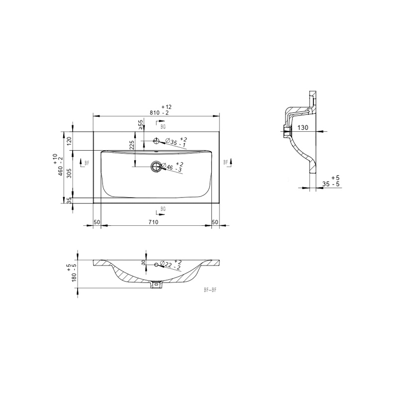 - Отверстие под перелив: есть