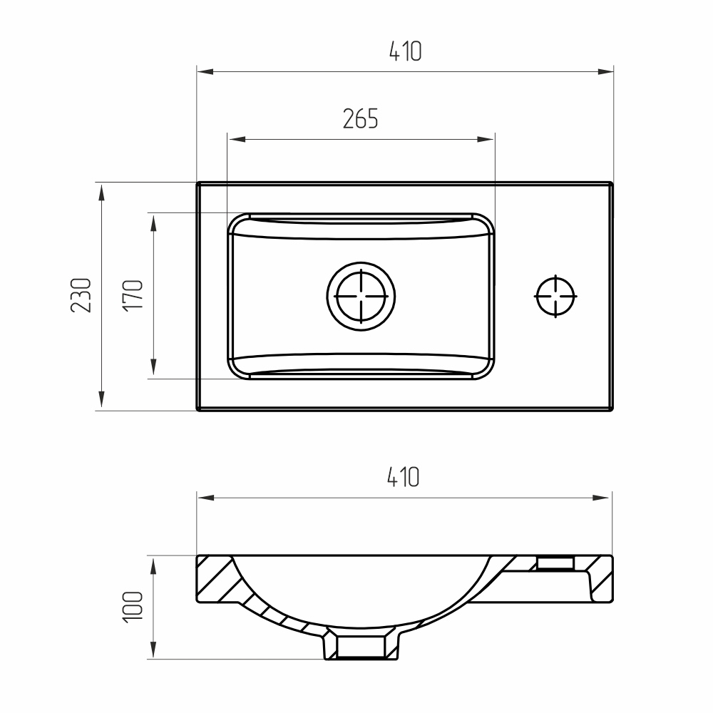 - Отверстие под перелив: без отверстия