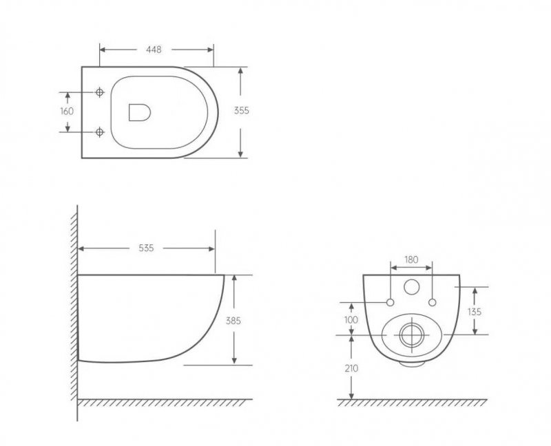 - Унитаз подвесной безободковый с сиденьем и смывом TORNADO