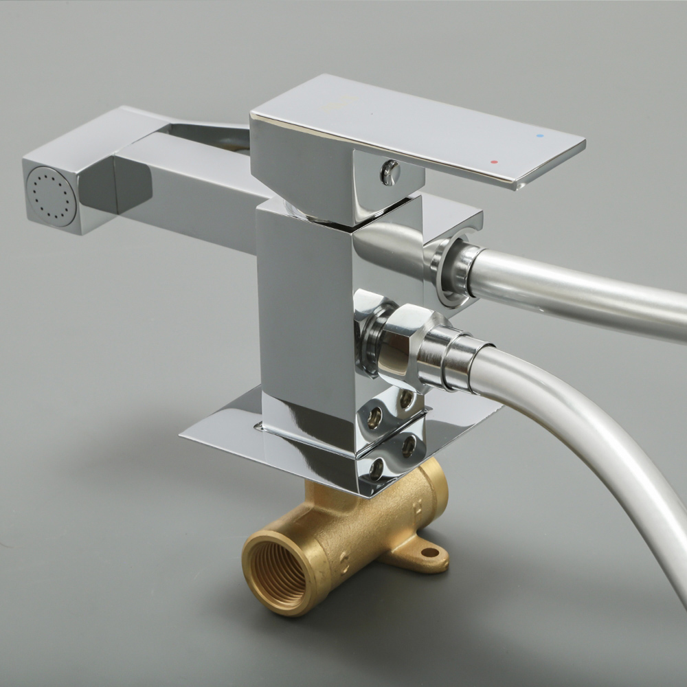 - Комплектация для сайта: смеситель; монтажный блок; гигиенический душ; душевой шланг; инструкция.