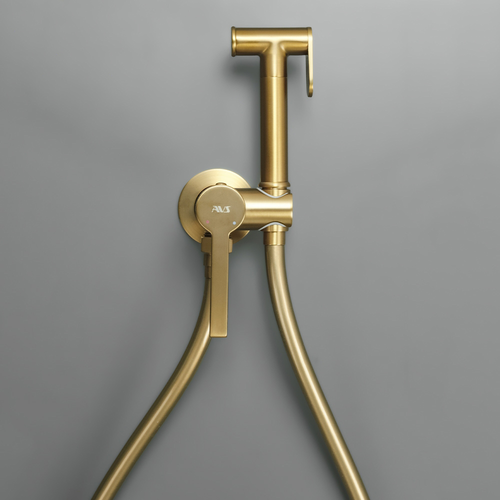 Гигиенический душ со смесителем AVS Elegant брашированное золото