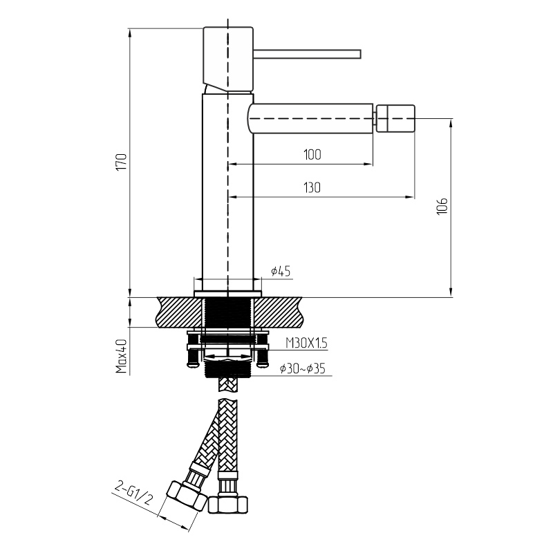 - Управление смесителем: рычажный