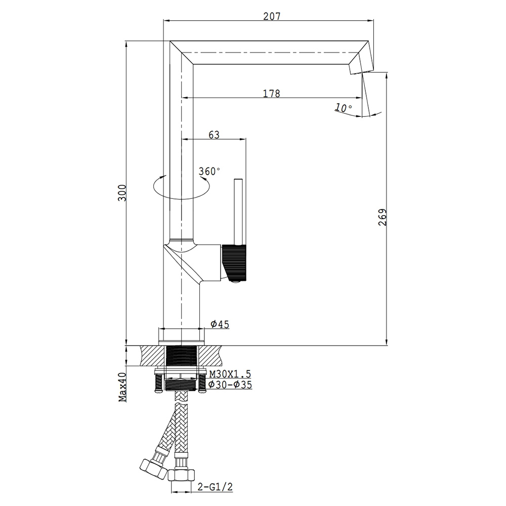 - Тип подводки: гибкая подводка