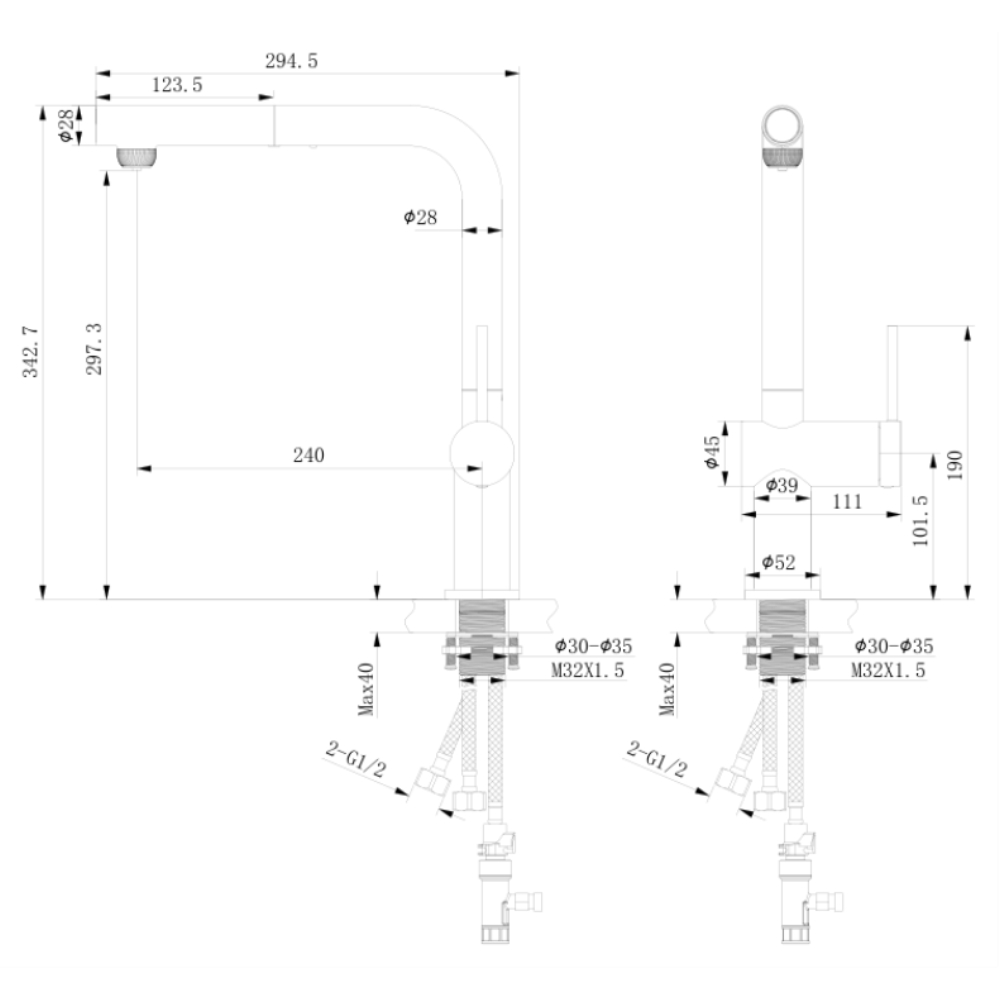 - Коллекция: PureRiver Г-образный выдвижной излив