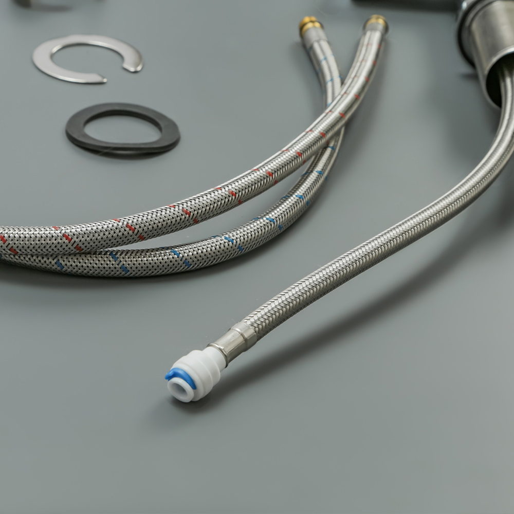 - Комплектация для сайта: смеситель; комплект креплений; комплект гибкой подводки; инструкция.