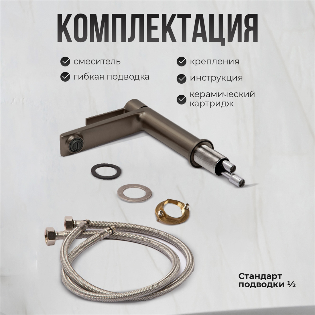- Комплектация для сайта: смеситель; комплект креплений; комплект гибкой подводки; инструкция.