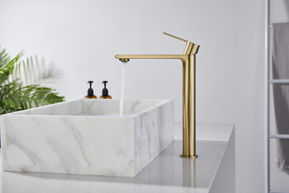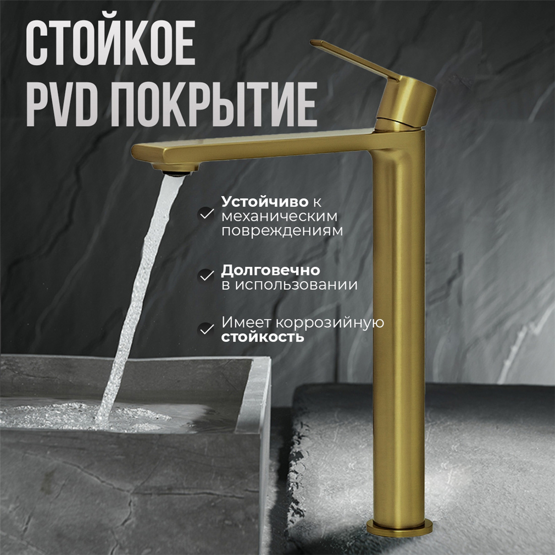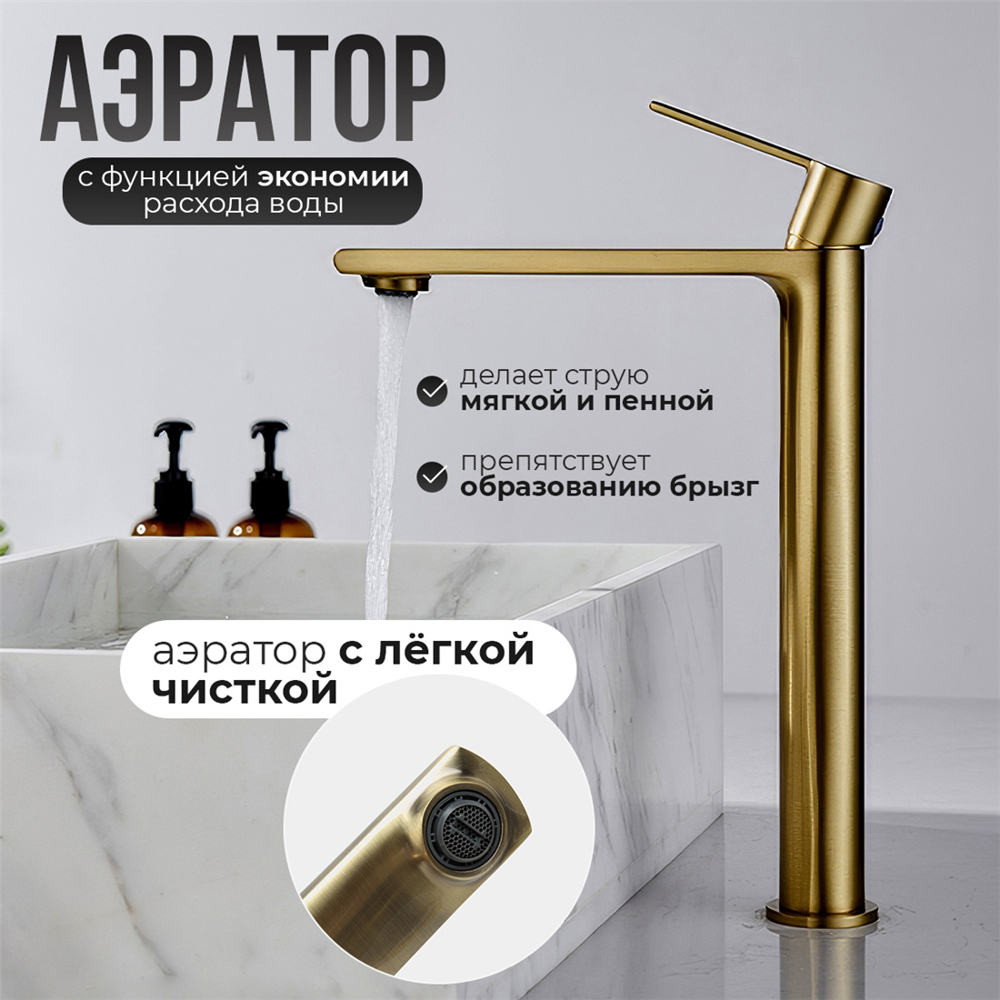 Смеситель для раковины AVS Elegant высокий, брашированное золото