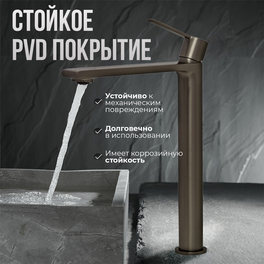 Смеситель для раковины AVS Elegant высокий, оружейная сталь