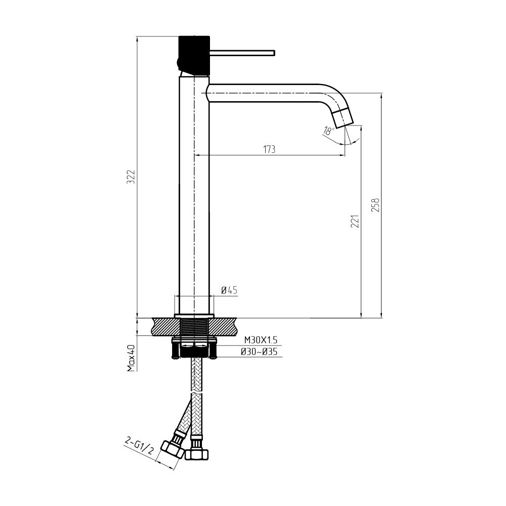- Тип подводки: гибкая подводка
