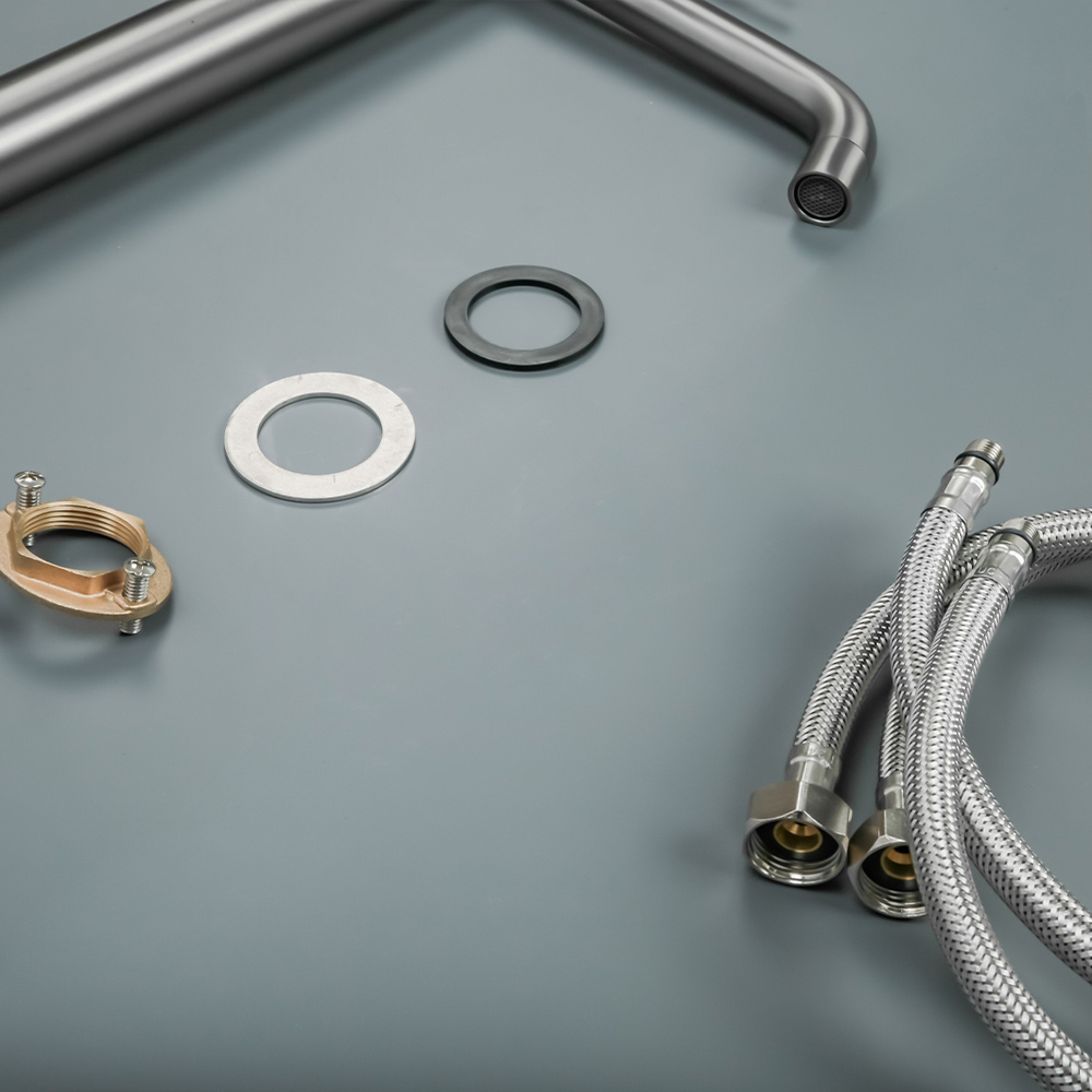 - Комплектация для сайта: смеситель; комплект креплений; комплект подводки; инструкция.