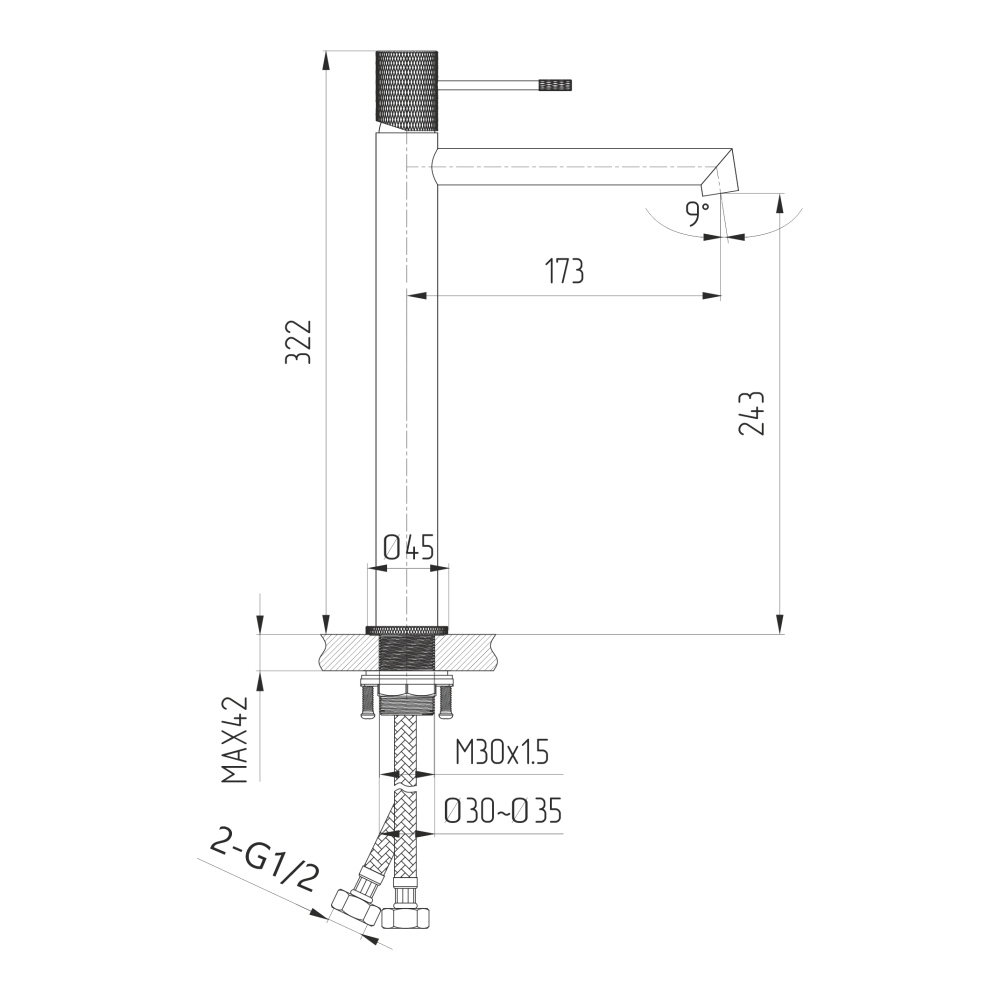 - Тип излива: фиксированный,высокий