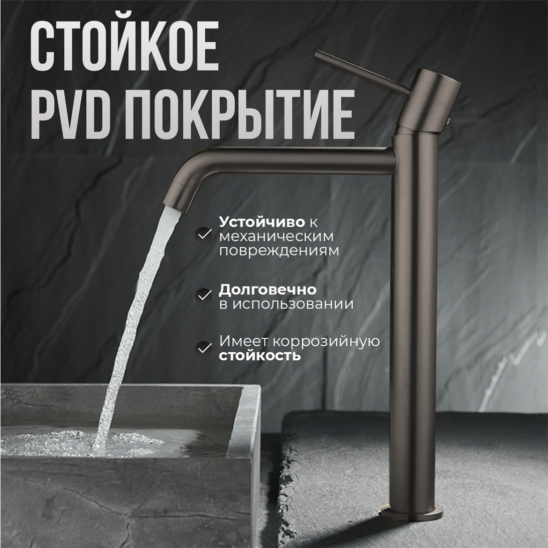 Смеситель для раковины AVS Slimmer высокий, оружейная сталь