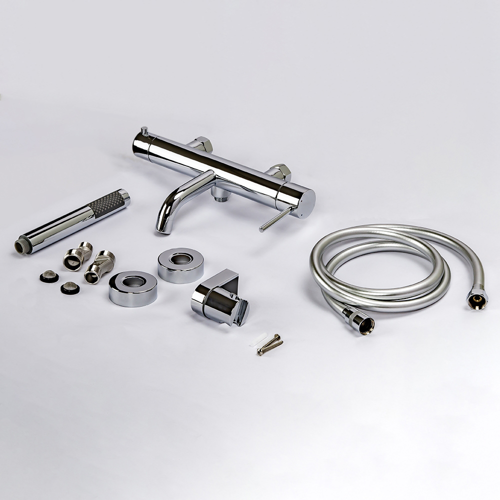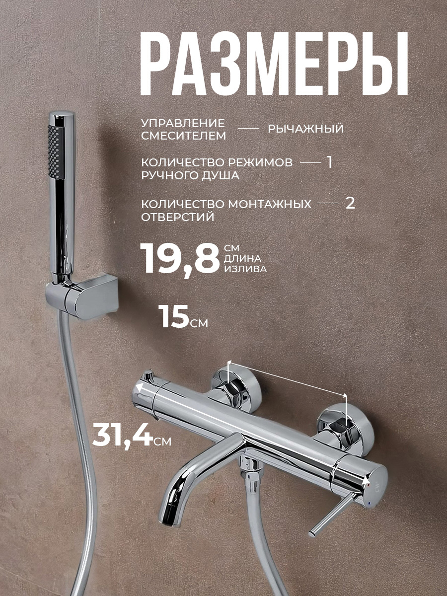 - Комплектация для сайта: смеситель; эксцентрики; душевой шланг; ручной душ; настенный держатель; инструкция.