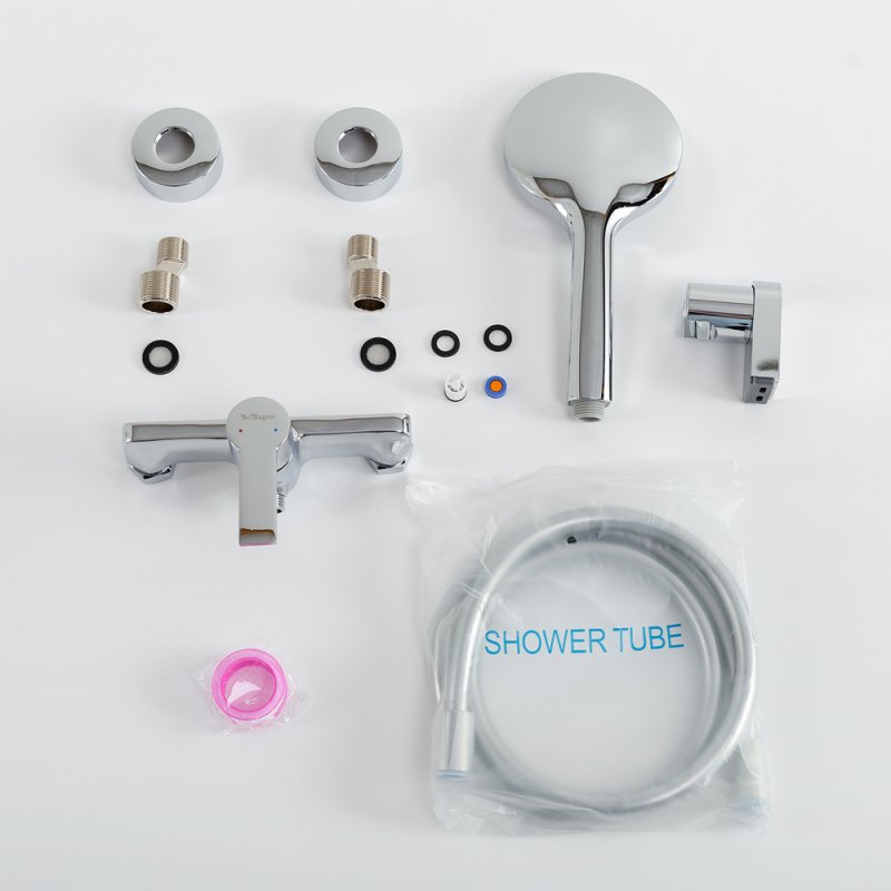 - Смеситель, душевой шланг 150 см ПВХ, душевая лейка , настенный держатель ручного душа