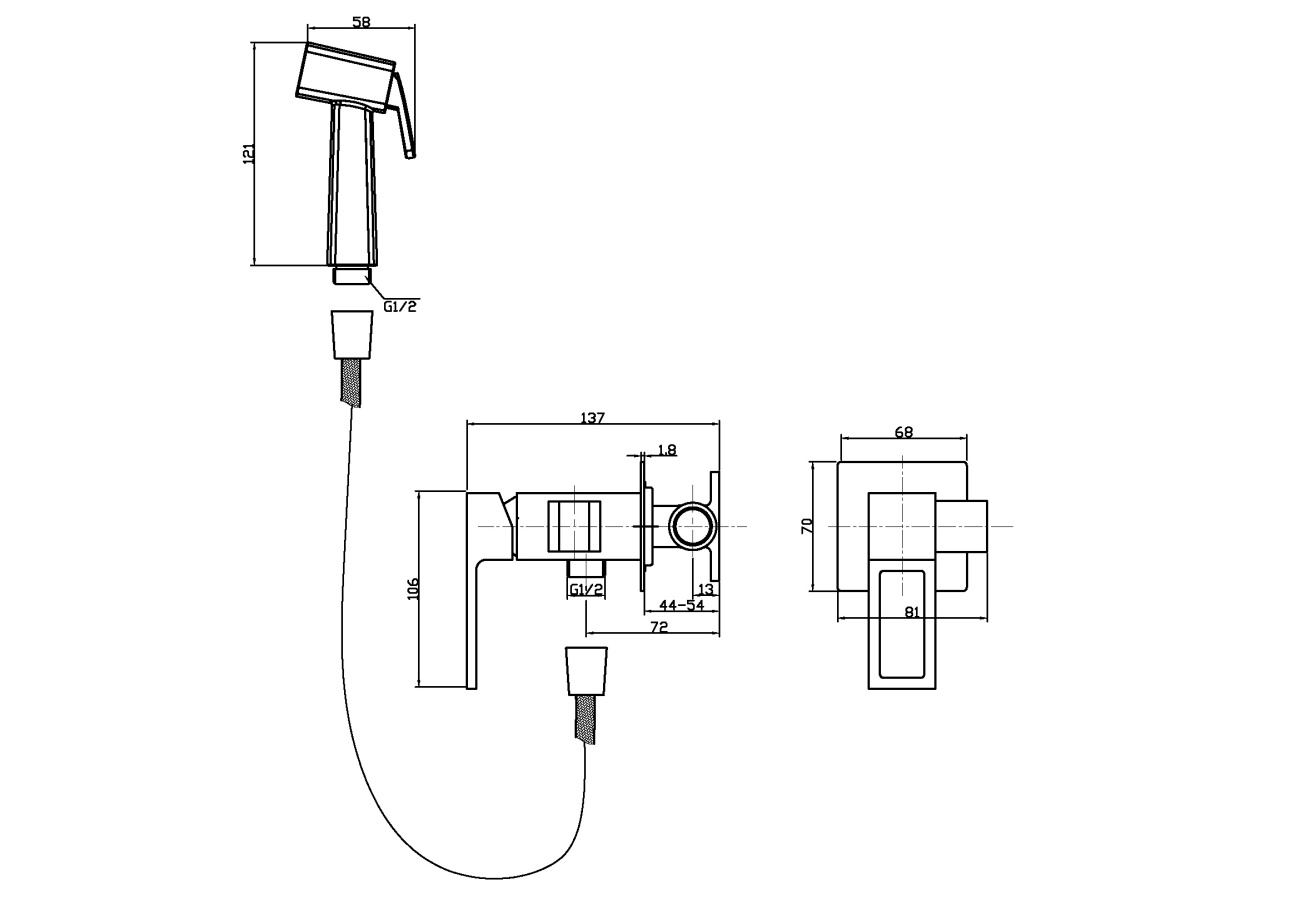 - Смеситель,душевая лейка из ABS, душевой шланг 120 см ПВХ, держатель