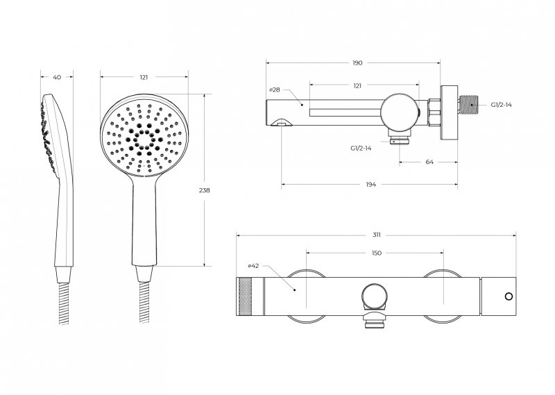 - Размер ручного душа: 23,8 х 12,1 х 4 см