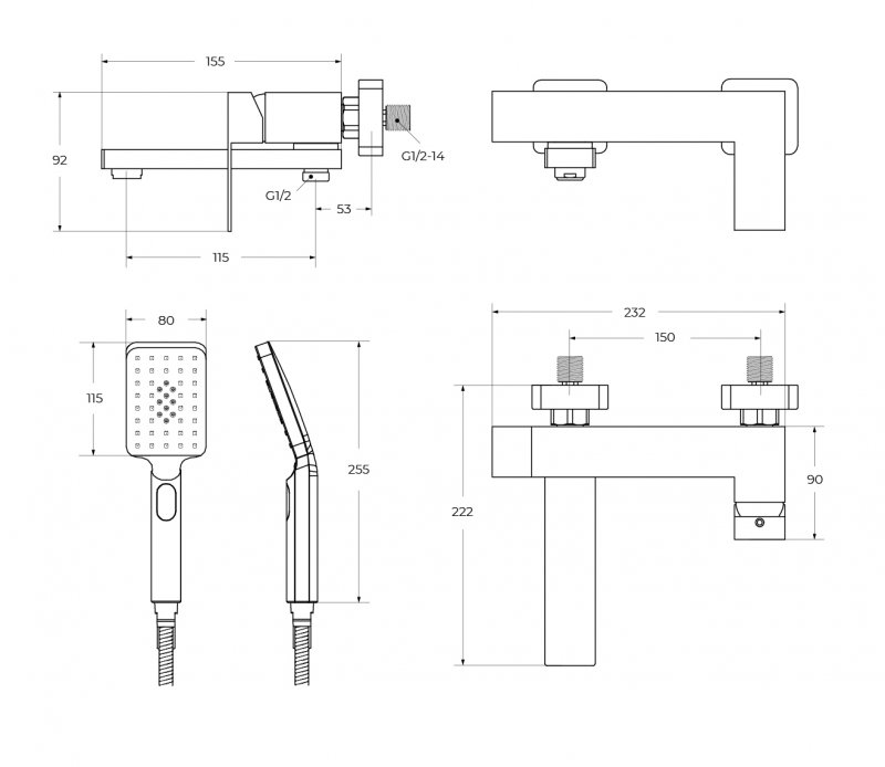 - Оснащение: смеситель с поворотным изливом (переключение на ручной душ), эксцентрики, аэратор, душевой шланг, ручной душ 3-х режимный, держатель настенный