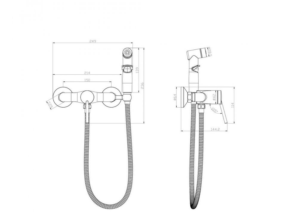 - Аксессуары в комплекте: лейка для биде с функцией плавной регулировки напора воды, шланг 1,5 м