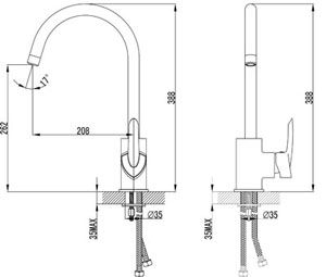 - Смеситель для кухни с высоким поворотным изливом.